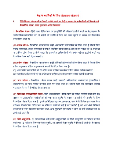 I. हहंदी र्िक्षण योजना की परीक्षाएँ उत््तीणि करने पर कें द्रीय सरकार क े कमिचाररयों को र्मिने वािे